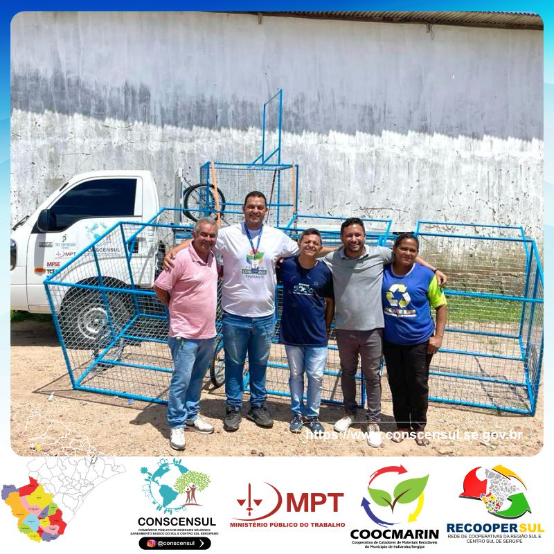 O CONSCENSUL - Consórcio Público de Residuos Sólidos e Saneamento Básico do Sul e Centro Sul de Sergipe, juntamente com o MPT - Ministério Público do Trabalho, realizou a entrega de novos equipamentos para a COOCMARIN - Cooperativa de Catadores de Materiais Recicláveis do Município de Indiaroba/SE.